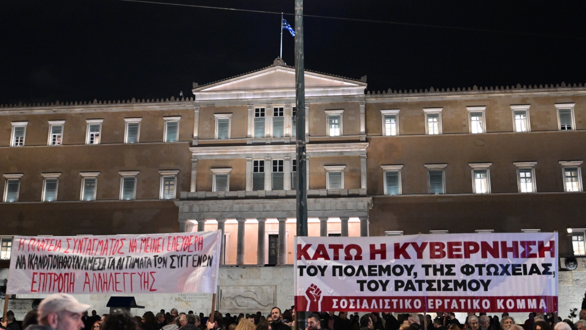 Σύνταγμα: Συγκέντρωση έξω από τη Βουλή για την τροπολογία για το Μνημείο του Αγνώστου Στρατιώτη (Φωτογραφίες)