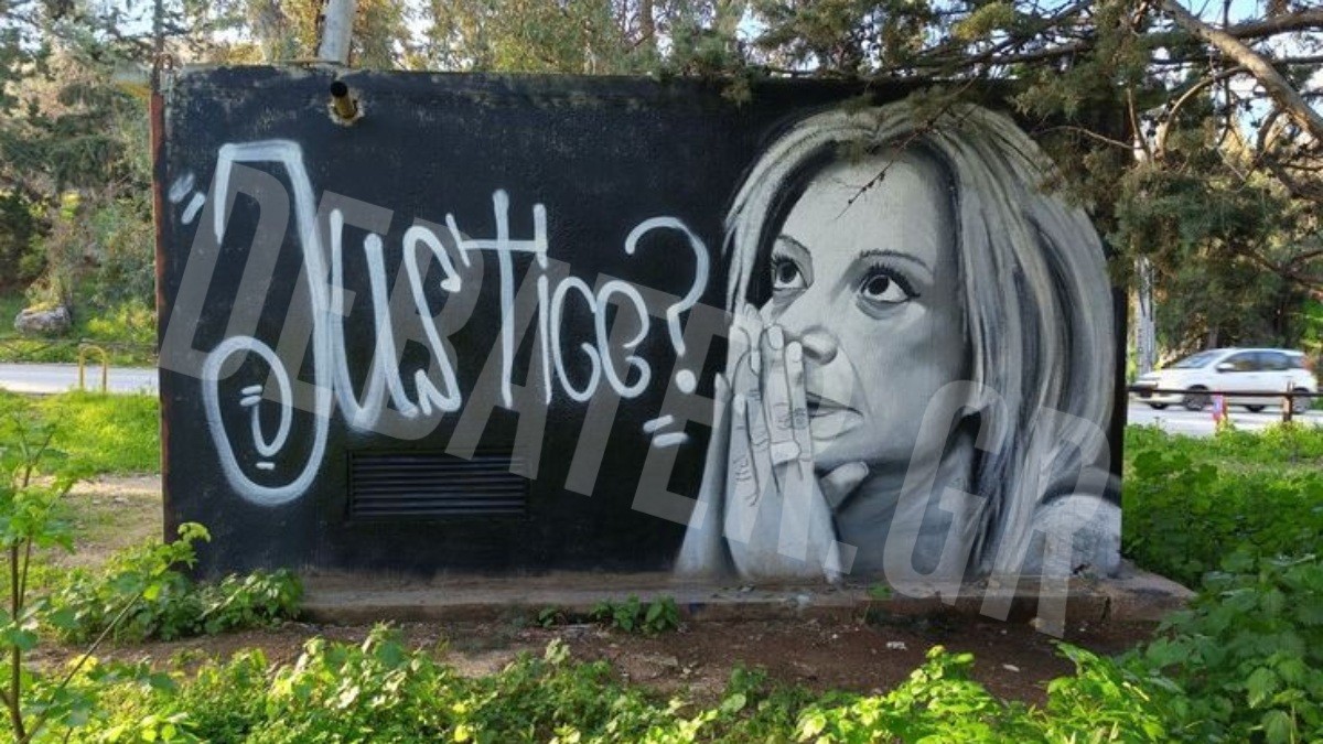 Στην Καισαριανή, ένας άλλος τοίχος μετατράπηκε σε καμβά διαμαρτυρίας και μνήμης. Ένα γκράφιτι με το πρόσωπο της μητέρας-σύμβολο, Καρυστιανού, συνοδευόμενο από τη λέξη “Justice”, θυμίζει πως οι οικογένειες των θυμάτων συνεχίζουν να αναζητούν δικαιοσύνη.