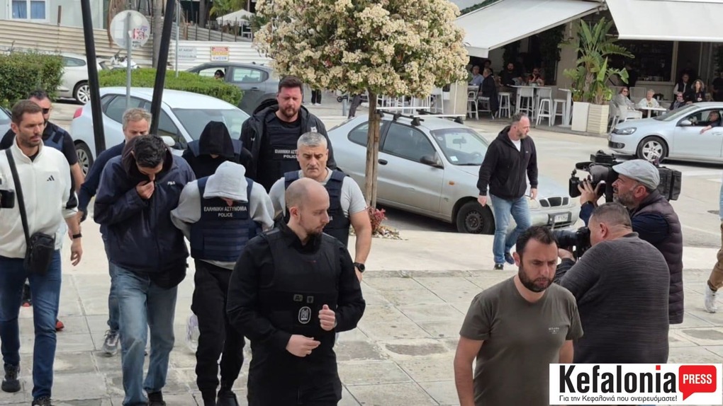 Νωρίτερα, οι τρεις συλληφθέντες οδηγήθηκαν υπό δρακόντεια μέτρα ασφαλείας, φορώντας κουκούλες και αλεξίσφαιρα γιλέκα στα δικαστήρια Κεφαλονιάς.