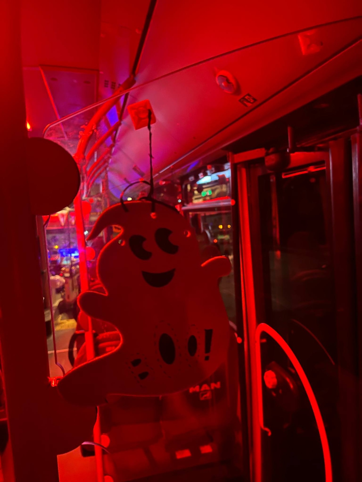 Δεν έχει όμως καμία σχεση μ αυτήν, αλλά για το σκηνικό μέσα στο λεωφορείο ΚΤΕΛ της γραμμής 57 που έχει «σκηνοθέτη, παραγωγό» και πρωταγωνιστή τον οδηγό του, Μάνο Κατσικά, γνωστό πλέον για τις μεταμορφώσεις του λεωφορείου – καθώς κάθε εποχή βάζει την πινελιά του. Έτσι, δεν θα μπορούσε να λείπει και από το φετινό Halloween!