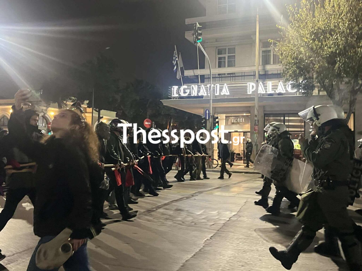 Ένταση σημειώθηκε το βράδυ της Δευτέρας 17/11 κατά τη διάρκεια της πορείας στο κέντρο της Θεσσαλονίκης για την 52η επέτειο της εξέγερσης του Πολυτεχνείου.