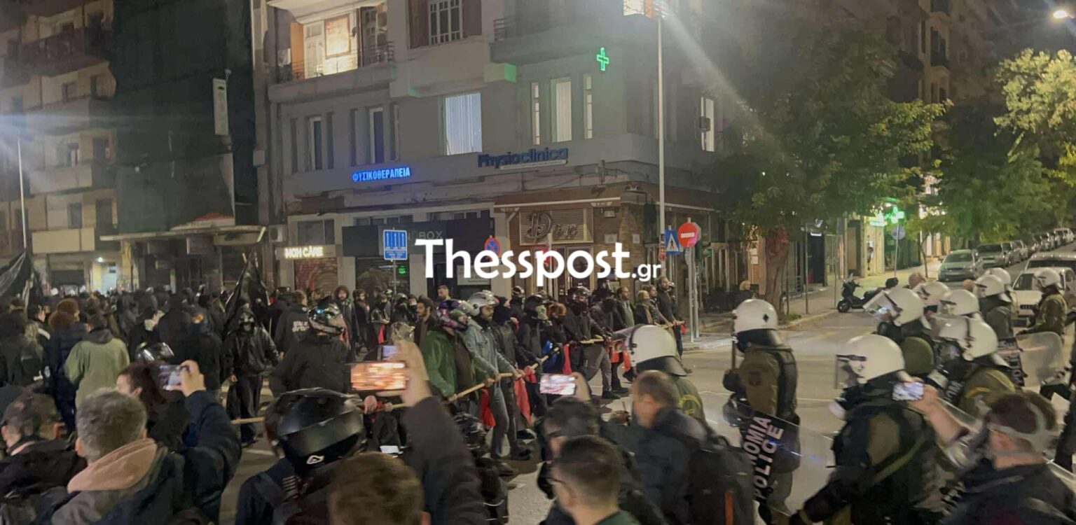 Θεσσαλονίκη: Ένταση στην πορεία για την 52η επέτειο του Πολυτεχνείου – Άγνωστοι πέταξαν αντικείμενα στους αστυνομικούς