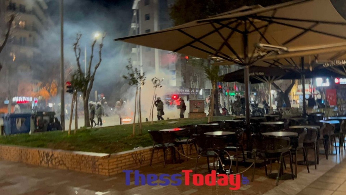 Σοβαρά επεισόδια ξέσπασαν το βράδυ της Τετάρτης 5/3 στο κέντρο της Θεσσαλονίκης κατά τη διάρκεια της πορείας για την τραγωδία στα Τέμπη.