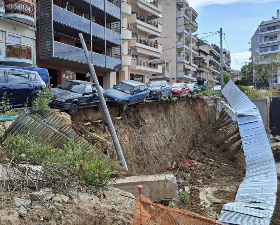 Το πρανές στην πλευρά της οδού Αλοννήσου στην Θεσσαλονίκη υποχώρησε και τα οχήματα που ήταν παρκαρισμένα στο σημείο βρέθηκαν ξαφνικά στο όριο του κενού.