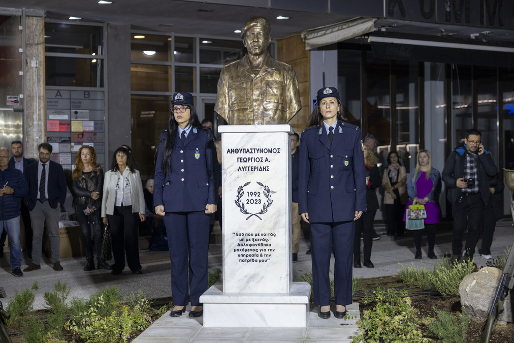 Σε κλίμα βαθιάς συγκίνησης, παρουσία του Προέδρου της Δημοκρατίας Κώστα Τασούλα, του Προέδρου της Βουλής Νικήτα Κακλαμάνη, της οικογένειας Λυγγερίδη και πλήθους πολιτών, πραγματοποιήθηκαν το απόγευμα της Δευτέρας τα αποκαλυπτήρια της προτομής στη μνήμη του αστυνομικού Γιώργου Λυγγερίδη.