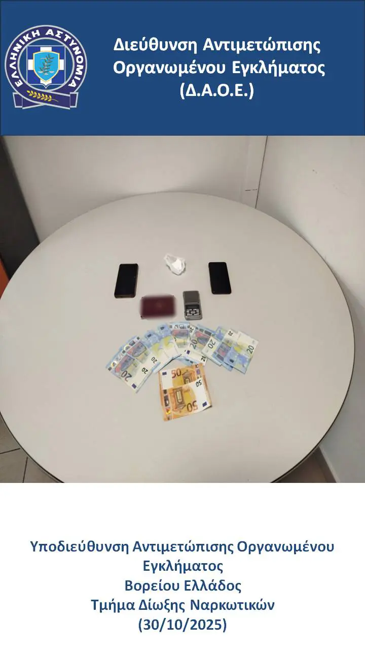 Στη σύλληψη ενός 26χρονου που διακινούσε ποσότητες κοκαΐνης στην περιοχή της Θεσσαλονίκης προχώρησε το μεσημέρι της Πέμπτης (30/10) η ΕΛΑΣ.