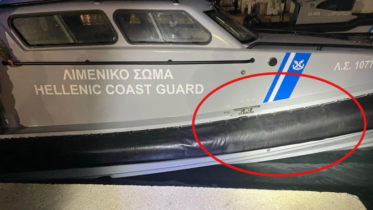 Η σύγκρουση ήταν τόσο σφοδρή με τη δεξιά πλάγια πλευρά του σκάφους του Λιμενικού Σώματος, όπως φαίνεται και στις φωτογραφίες που δόθηκαν στη δημοσιότητα.