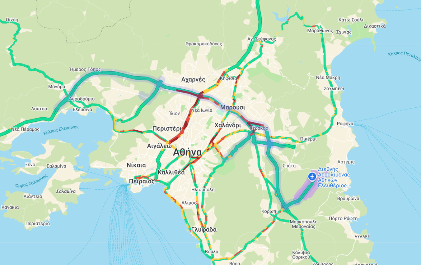 Προβλήματα αντιμετωπίζουν και όσοι κινούνται στη λεωφόρο Αθηνών, και στους δρόμους γύρω από το λιμάνι του Πειραιά.