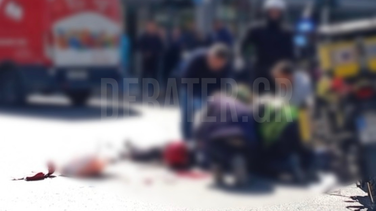 Οι αποκλειστικές φωτογραφίες δείχνουν τον αναβάτη πεσμένο στο οδόστρωμα και κόσμο να έχει συγκεντρωθεί ώστε να του δώσει τις πρώτες βοήθειες, καθώς και την Τροχαία στο σημείο για ρύθμιση της κυκλοφορίας.