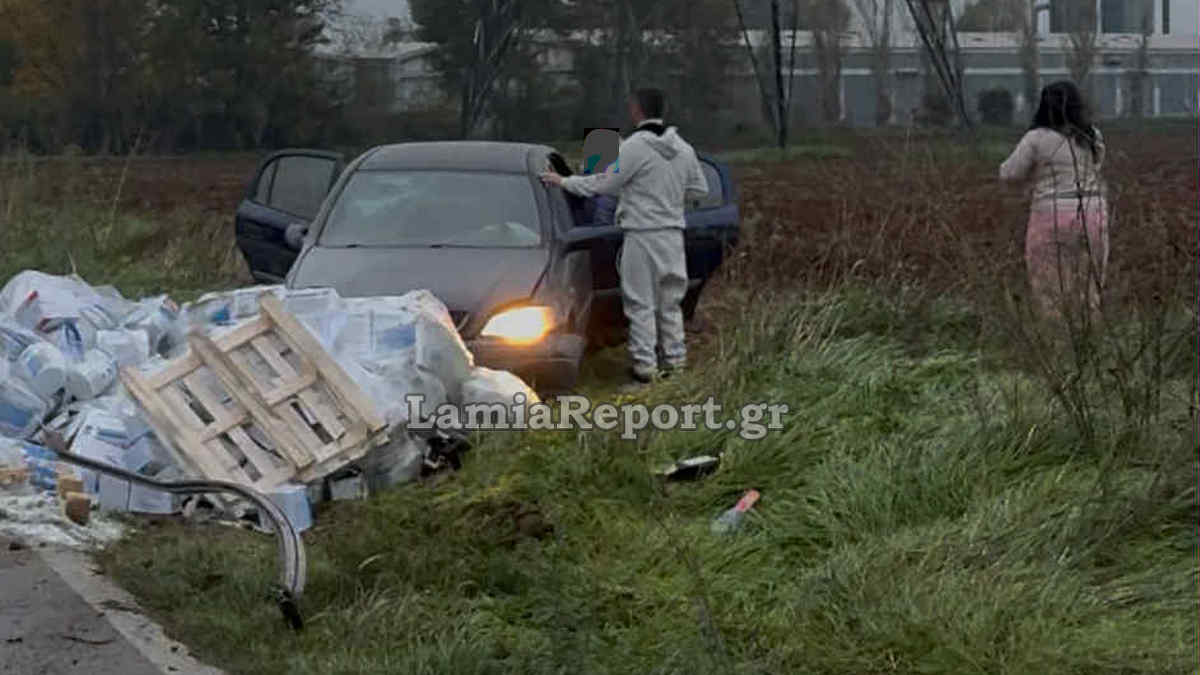 Τρόμος στη Θήβα: Γέμισε το οδόστρωμα τσιμέντα από εκτροπή νταλίκας – Εξετράπη αυτοκίνητο