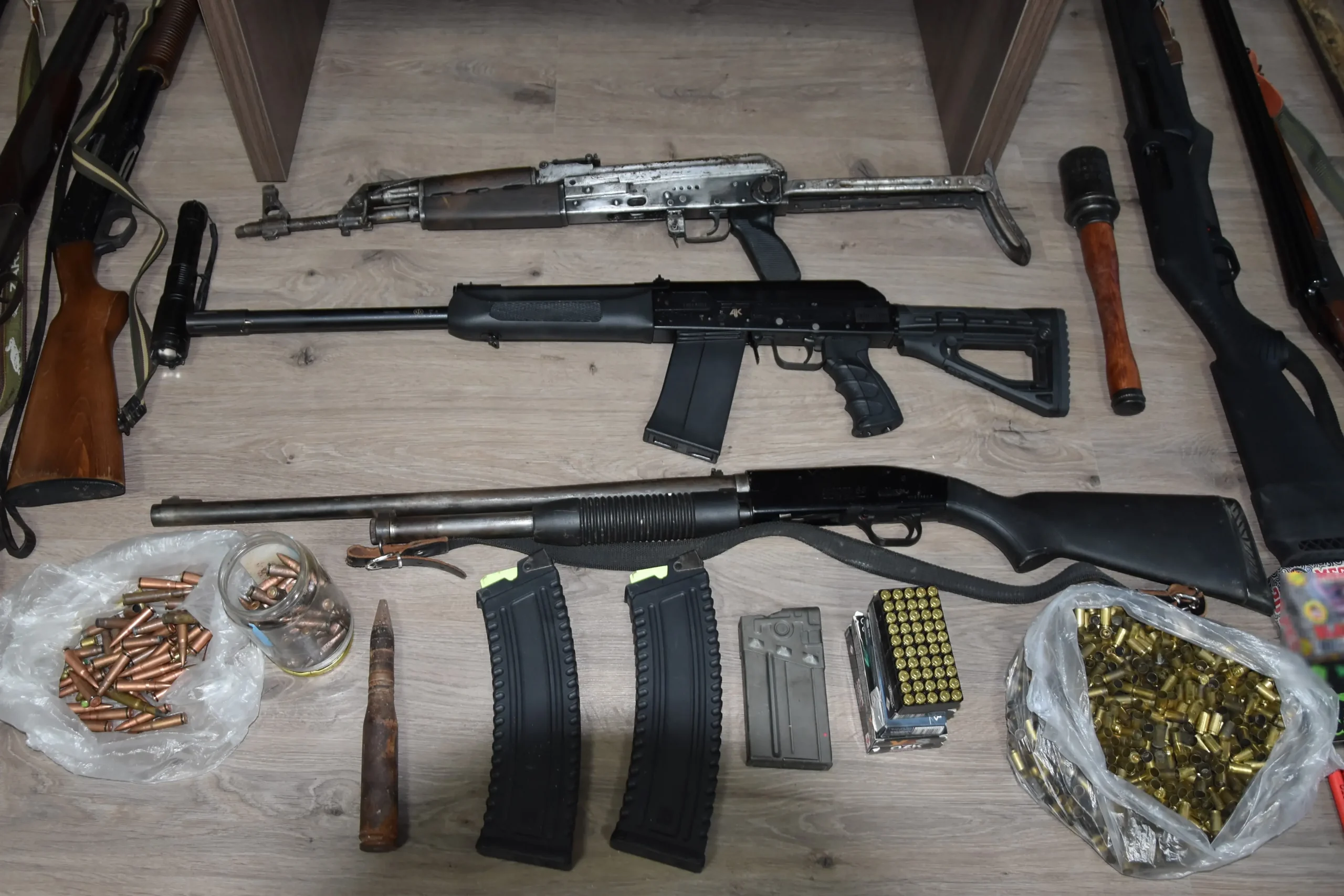 Κατά τη διάρκεια της επιχείρησης συνελήφθησαν πέντε (5) ημεδαποί ηλικίας από 36 έως 52 ετών κατηγορούμενοι για παραβάσεις νομοθεσίας περί όπλων.