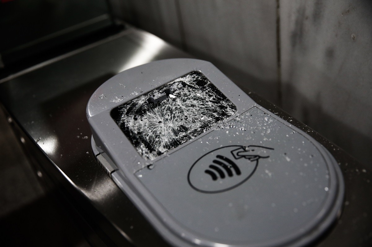 Μάλιστα έσπασαν 4 ακυρωτικά μηχανήματα και μια κάμερα μετά την ολοκλήρωση της πορείας.