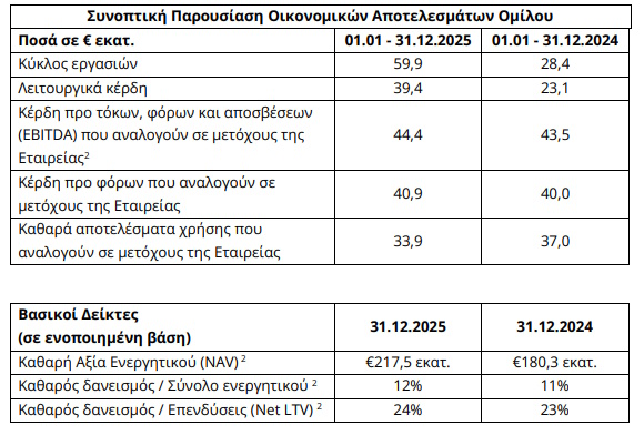 • Η υλοποίηση της επενδυτικής αξιοποίησης του χαρτοφυλακίου ακινήτων Skyline με βελτιωμένη ως προς τον σχεδιασμό επίδοση. Ως αποτέλεσμα, ο Όμιλος διατήρησε και στη χρήση 2025 την ισχυρή λειτουργική του επίδοση, με τα λειτουργικά κέρδη να διαμορφώνονται σε €39,4 εκατ., έναντι €23,1 εκατ. τη χρήση 2024, ενώ τα αποτελέσματα προ φόρων μετά από δικαιώματα μειοψηφίας ανήλθαν σε €40,9 εκατ. από €40,0 εκατ. τη χρήση 2024.