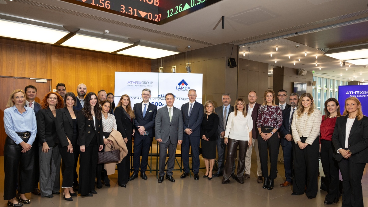 To Xρηματιστήριο Αθηνών υποδέχθηκε σήμερα τη Διοίκηση, στελέχη αλλά και συνεργάτες της LAMDA Development, με αφορμή την έναρξη διαπραγμάτευσης του νέου ομολόγου της στην Κύρια Αγορά του Χρηματιστηρίου Αθηνών. Ο Διευθύνων Σύμβουλος της εταιρείας κύριος Οδυσσέας Αθανασίου κήρυξε την έναρξη της συνεδρίασης χτυπώντας το παραδοσιακό καμπανάκι.