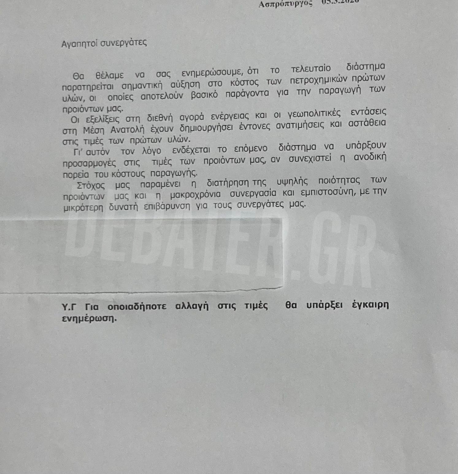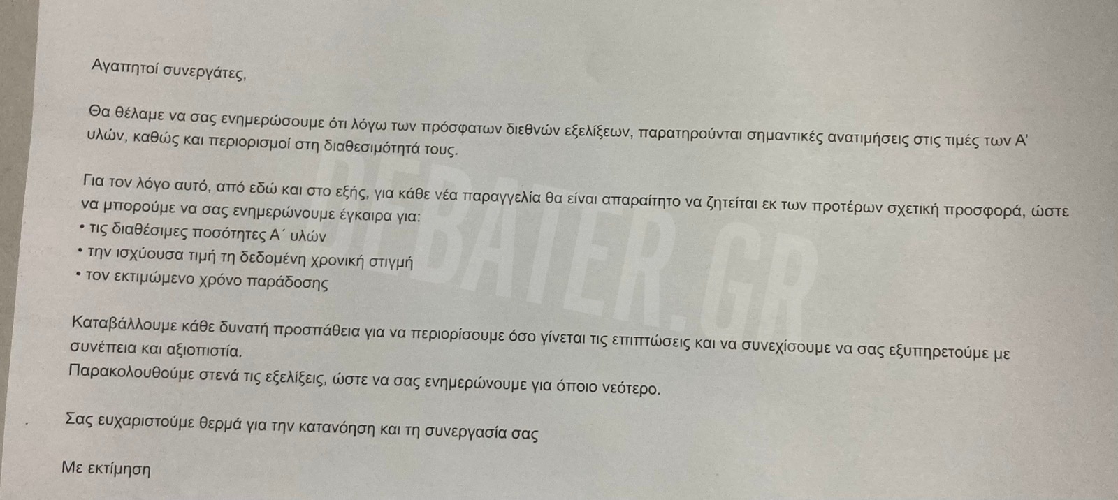 Καταγγελία στο DEBATER: «Δεχόμαστε επιστολές από προμηθευτές μας για αύξηση τιμών και θέματα διαθεσιμότητας λόγω πολέμου» (εικόνες)