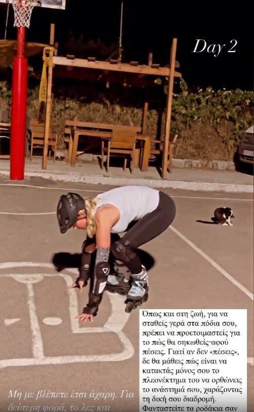 Ενώ το βράδυ της Κυριακής (20/8) δημοσίευσε κι άλλα στιγμιότυπα από τη δεύτερη προσπάθειά της με τα rollers. Συνόδευσε το post με ένα μακροσκελές μήνυμα:
