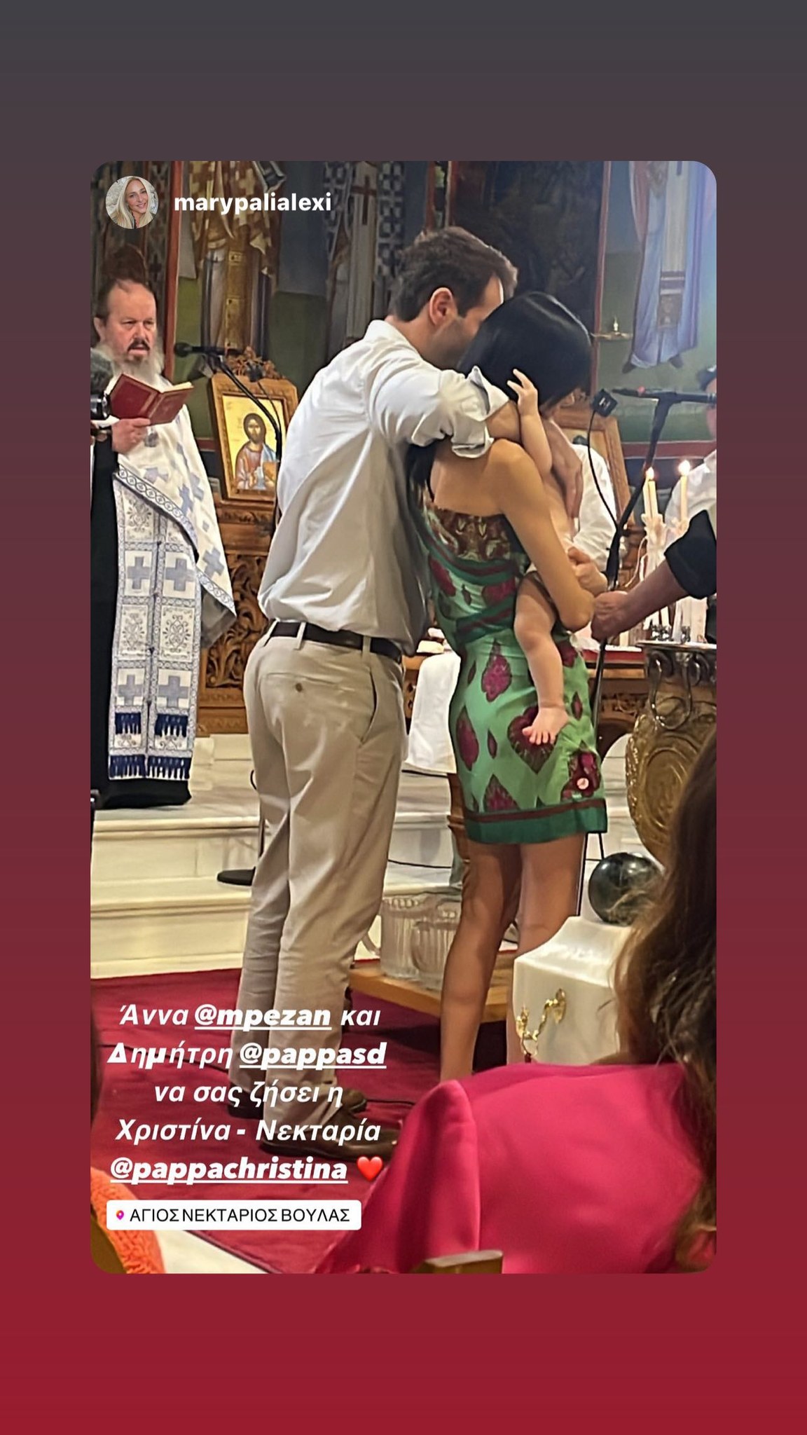 Η Άννα Μπεζάν και ο Δημήτρης Παππάς βάφτισαν την ενός έτους κόρη τους το απόγευμα της Κυριακής (24/9) στον Ιερό Ναό του Αγίου Νεκταρίου στη Βούλα.