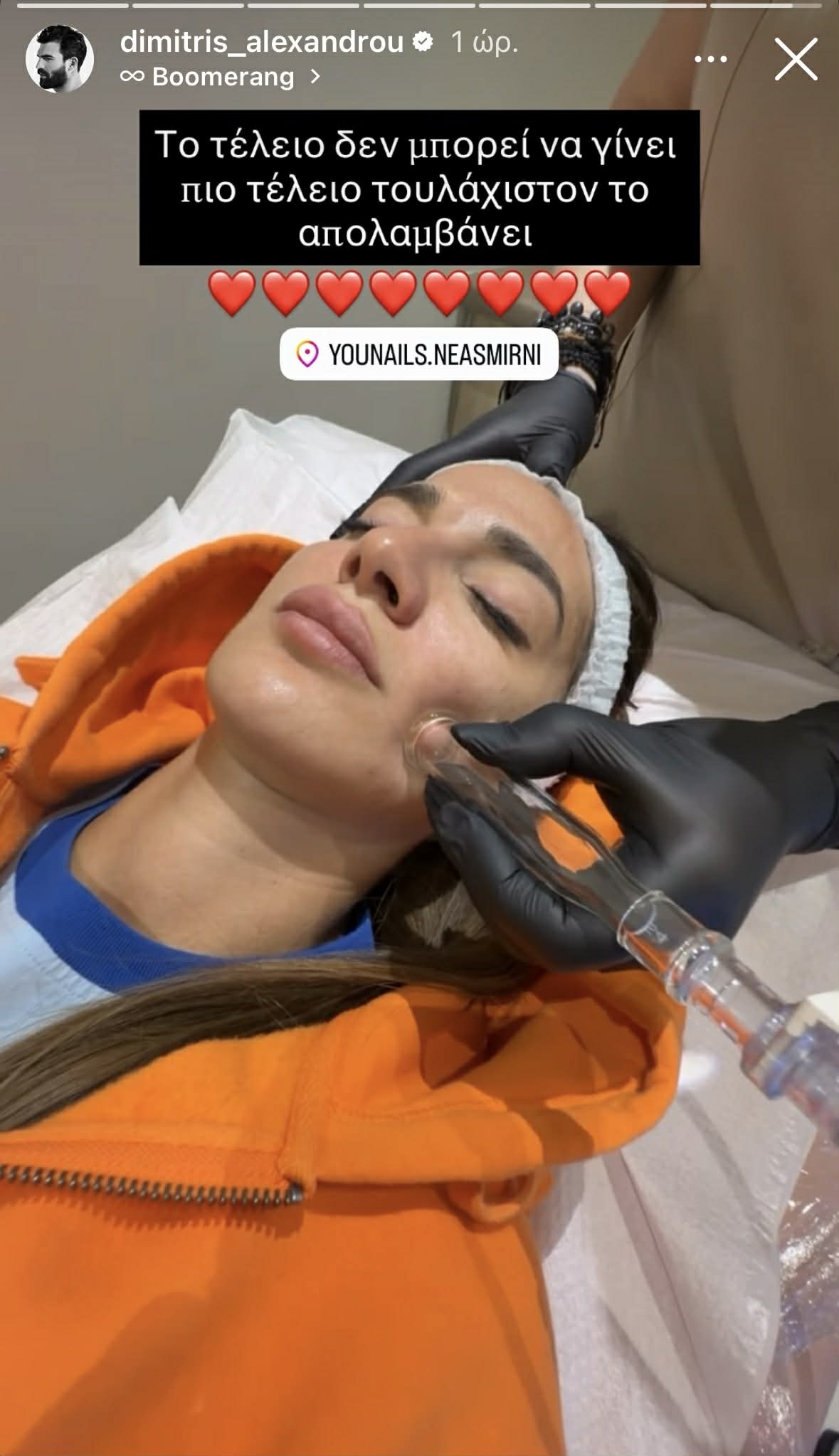 Στο πρόσφατο ραντεβού της για μια περιποίηση προσώπου, ο Δημήτρης Αλεξάνδρου δεν έχασε την ευκαιρία να δείξει για ακόμα μια φορά πόσο θαυμάζει τη σύντροφό του.
