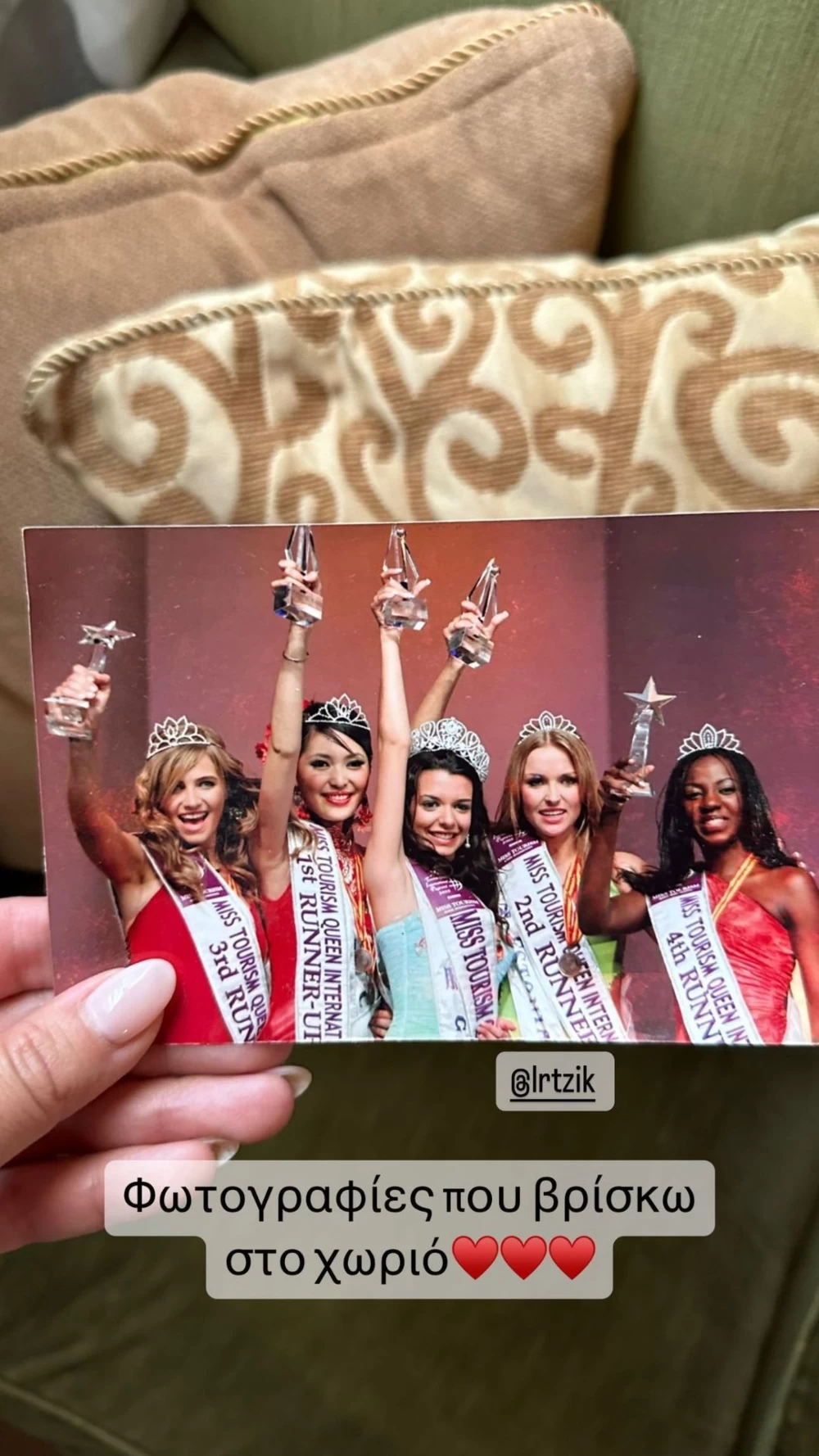 Η παρουσιάστρια ψάχνοντας παλιές φωτογραφίες, έπεσε πάνω σε μία από τότε που είχε εκπροσωπήσει την Ελλάδα στον διαγωνισμό Miss Tourism Queen International το 2005 στο Χανγκ Τσου της Κίνας κατακτώντας την πρώτη θέση.