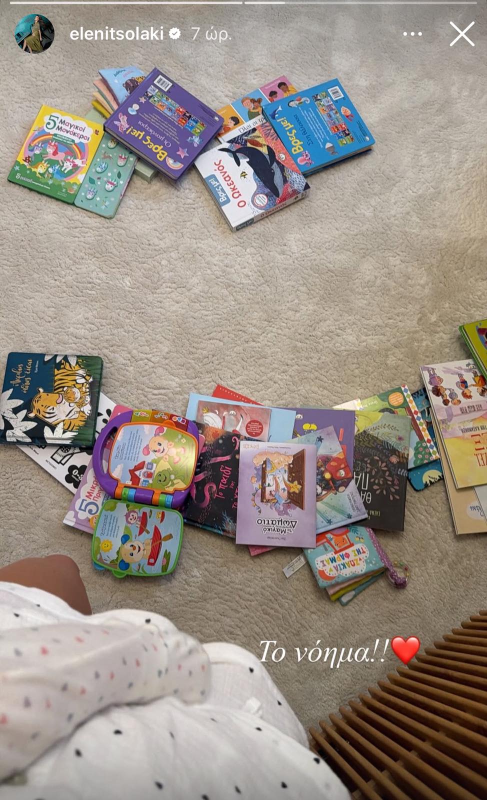 Στο στιγμιότυπο που μοιράστηκε, η παρουσιάστρια φαίνεται να απολαμβάνει τον χρόνο της με την κόρη της και τα αγαπημένα της βιβλία, συνοδεύοντας τη φωτογραφία με τη λιτή αλλά περιεκτική λεζάντα: «Το νόημα».