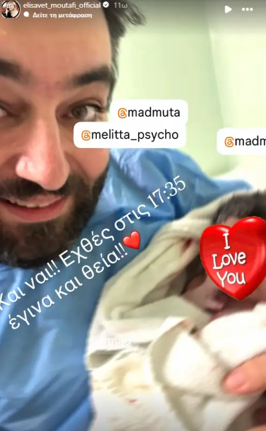 Η γνωστή ηθοποιός μοιράστηκε τη Δευτέρα (17.11.2025) μία φωτογραφία στο Instagram με τον ευτυχή μπαμπά, Κωνσταντίνο Μουταφτσή, που αγάπησε το ευρύ κοινό μέσα από τον ρόλο του στη σειρά «Σέρρες» του Γιώργου Καπουτζίδη. Η Ελισάβετ Μουτάφη έγινε λοιπόν θεία και η χαρά της είναι απερίγραπτη.