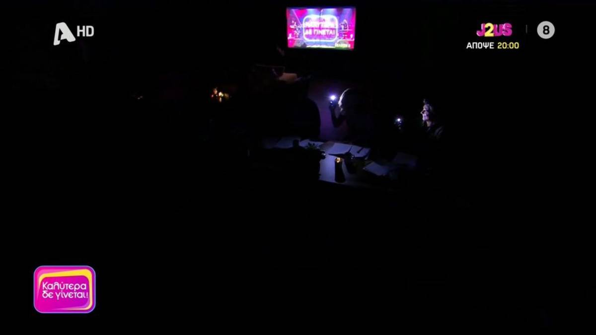 Ξαφνικά, τα φώτα έσβησαν και το πλάτο βυθίστηκε στο σκοτάδι, την ώρα που η παρουσιάστρια σχολίαζε τη συνέντευξη που έδωσε στην εκπομπή ο Μιχάλης Σαράντης.