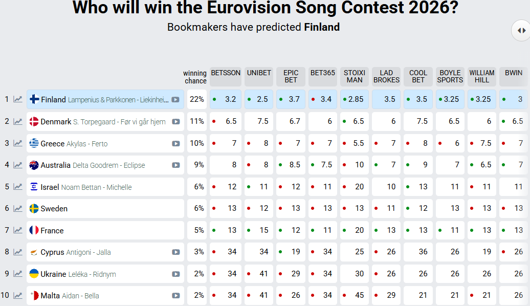 Eurovision 2026: O Akylas έπεσε στην 3η θέση των στοιχημάτων – 1η με μεγάλη διαφορά η Φινλανδία