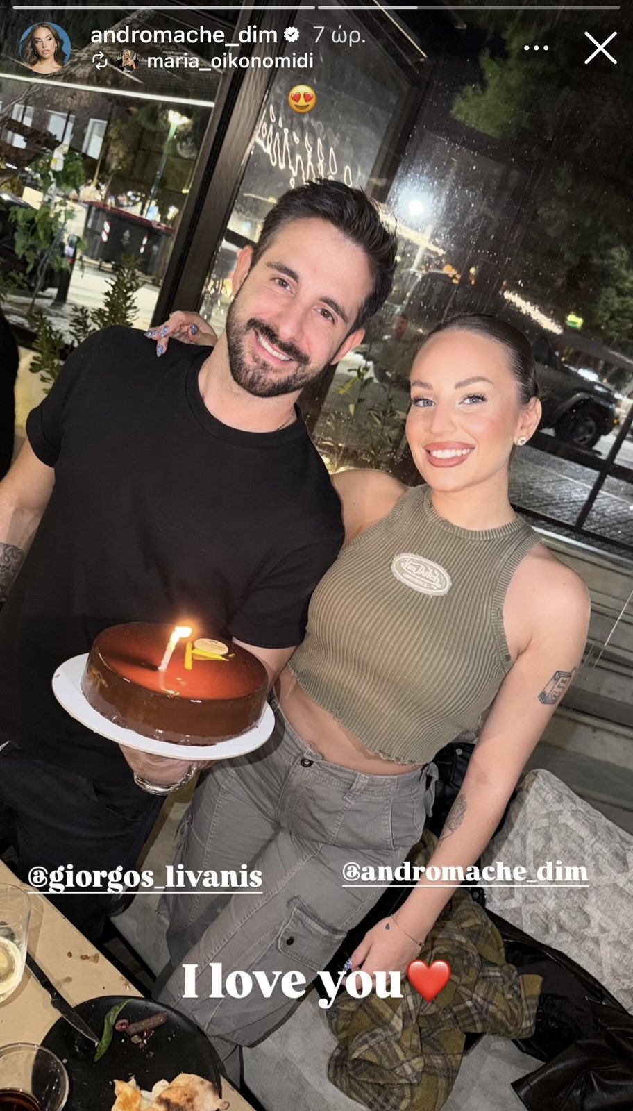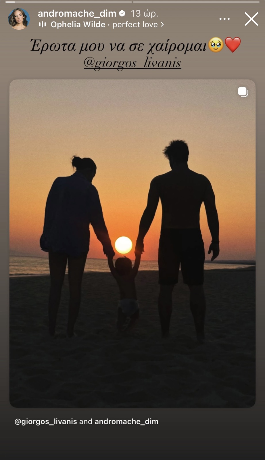 Για να ευχηθεί στον αγαπημένο της, αρχικά, η Ανδρομάχη δημοσίευσε ένα insta story με μια φωτογραφία που αποτυπώνει τέλεια την προσωπική τους ευτυχία.
