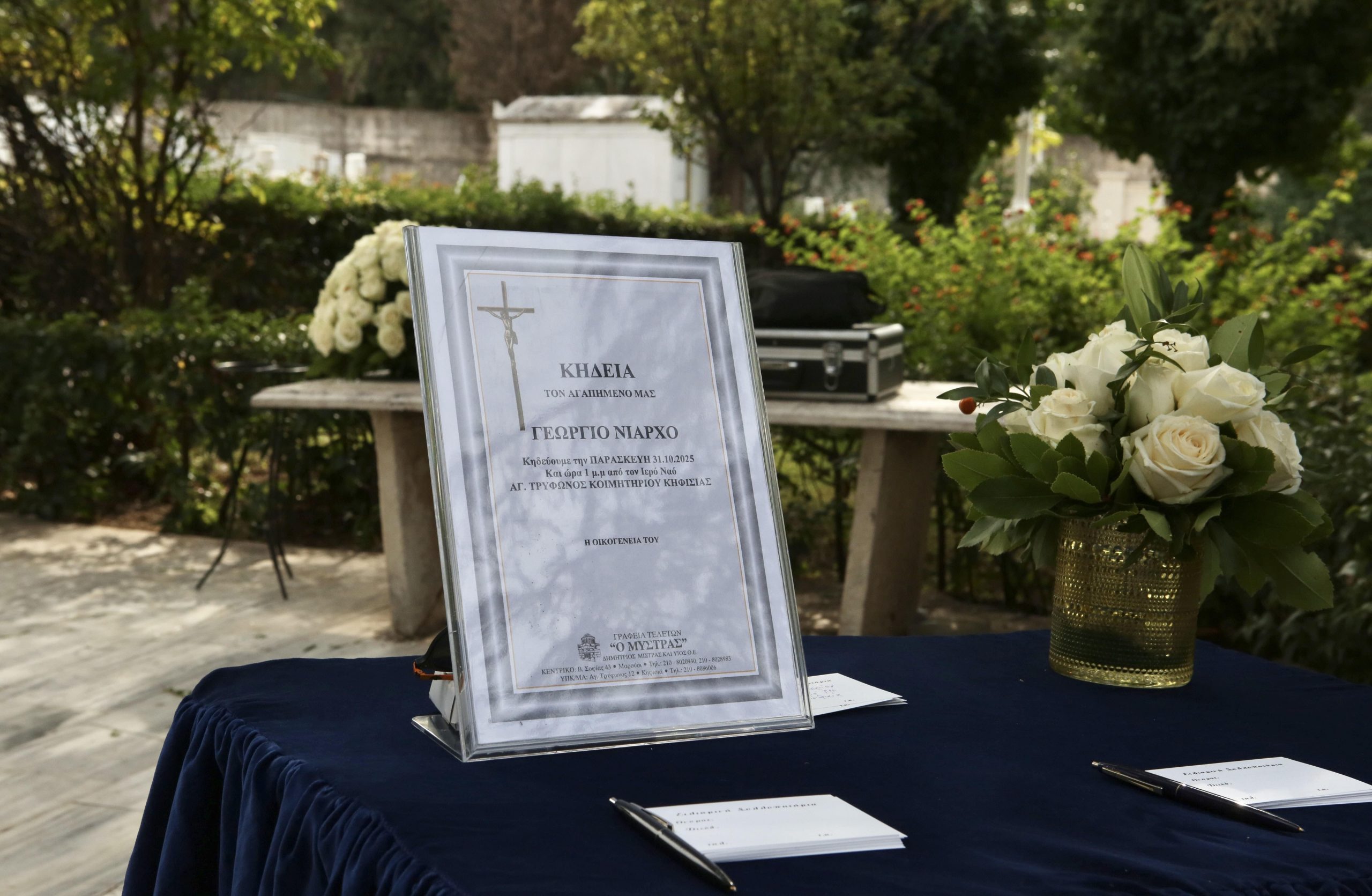 Σε βαρύ κλίμα οδύνης, ο καλλιτεχνικός κόσμος, η οικογένεια και στενοί φίλοι αποχαιρέτησαν σήμερα, Παρασκευή 31 Οκτωβρίου, τον σπουδαίο μαέστρο και ενορχηστρωτή Γιώργο Νιάρχο. Ο αιφνίδιος θάνατός του βύθισε σε πένθος τον κόσμο της μουσικής και, κυρίως, την οικογένειά του, με τη σύζυγό του, Μάρα Θρασυβουλίδου, να είναι συντετριμμένη στο τελευταίο «αντίο».