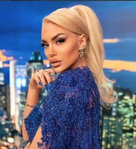 Η Αλεξάνδρα Παναγιώταρου εμφανίστηκε άκρως εντυπωσιακή, με ένα μπλε μίνι φόρεμα και αποκαλυπτικό μπούστο και μια ασορτί λαμπερή κάπα στους ώμους.