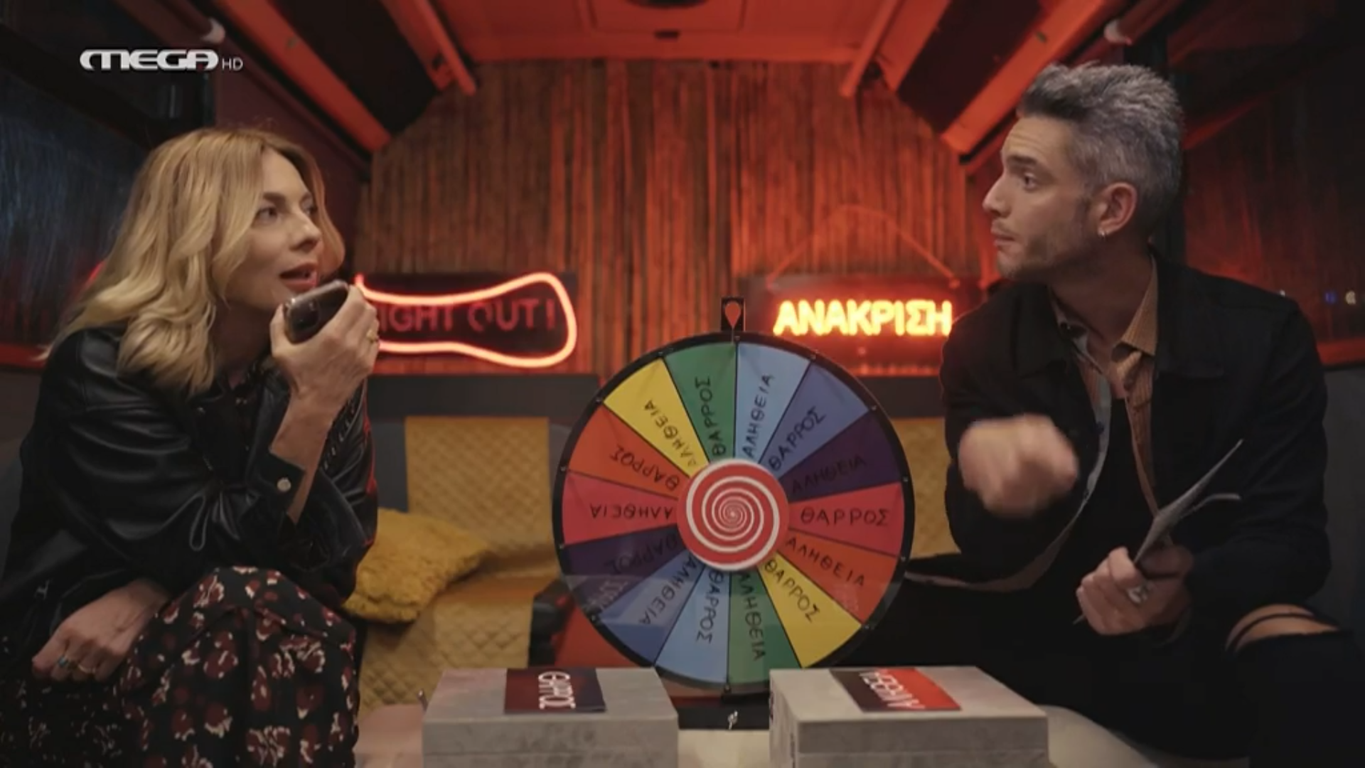 Στην πρεμιέρα της εκπομπής “Night Out” στο MEGA με παρουσιαστή τον Θεοχάρη Ιωαννίδη βρέθηκε η ηθοποιός Σμαράγδα Καρύδη και της ζητήθηκε να παίξει το παιχνίδι “θάρρος ή αλήθεια”.