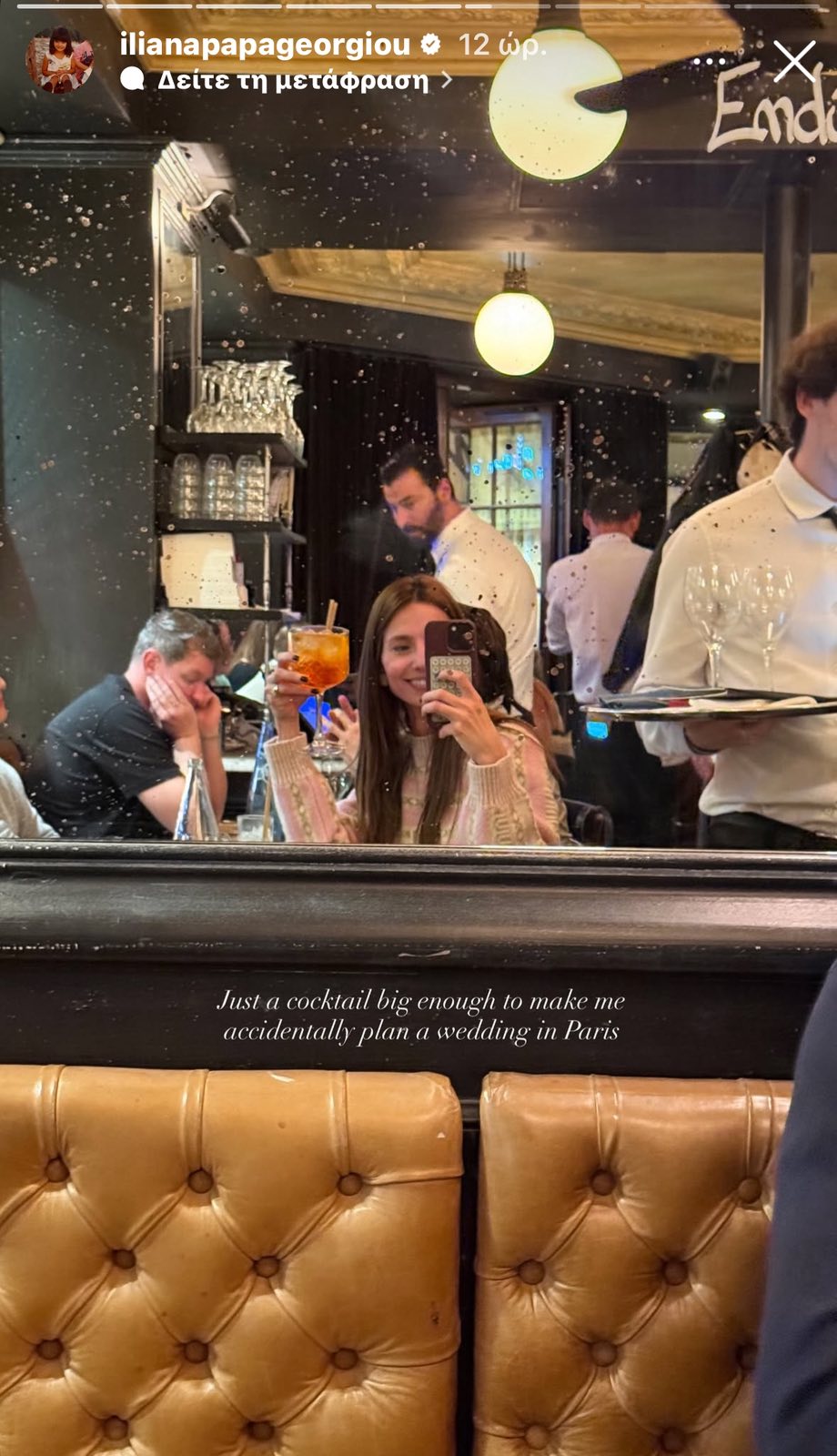 «Απλώς ένα κοκτέιλ αρκετά μεγάλο ώστε να με κάνει κατά λάθος να αρχίσω να σχεδιάζω έναν γάμο στο Παρίσι», γράφει στην λεζάντα της φωτογραφίας που ανέβασε.