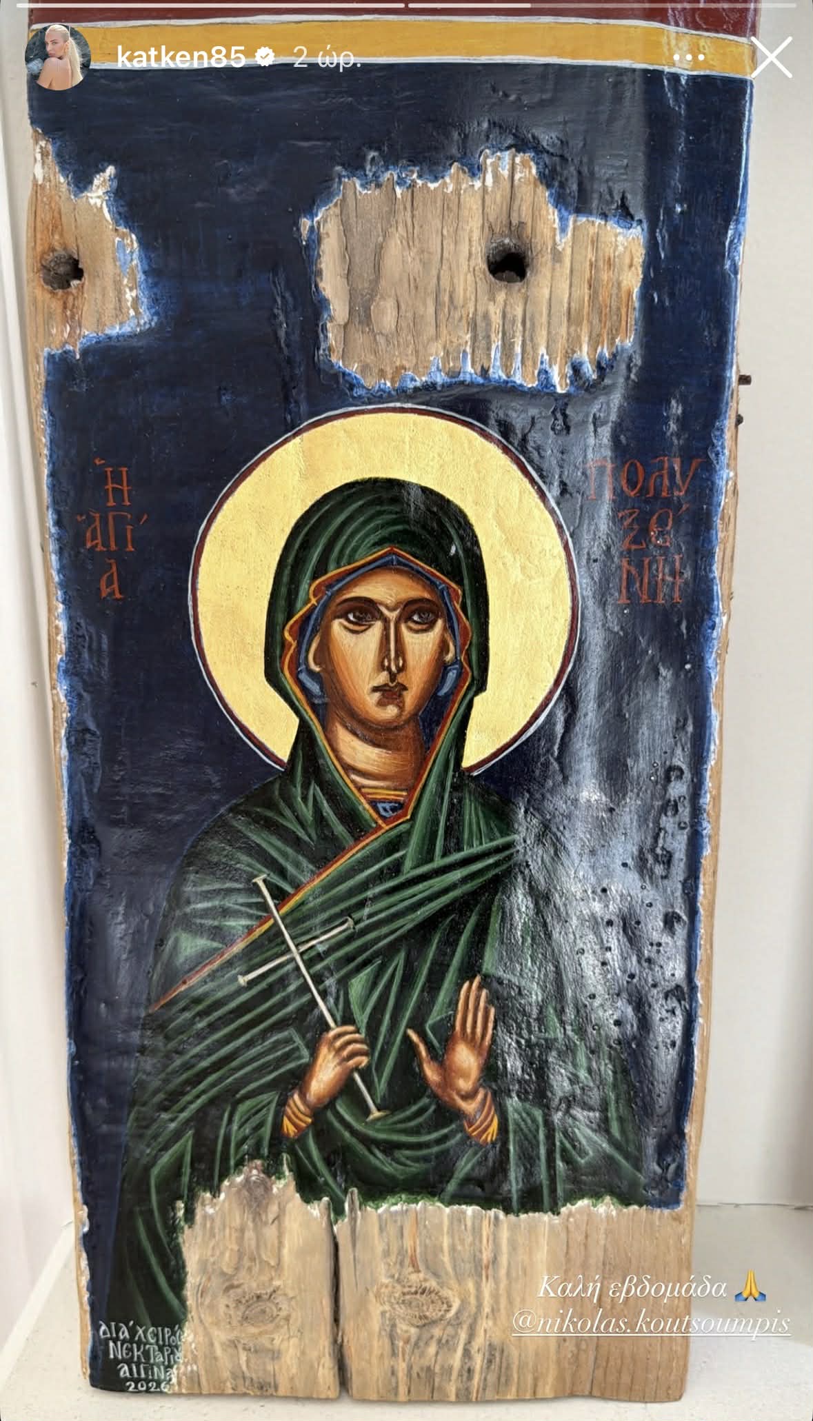Πρόκειται για μια εικόνα της Αγίας Πολυξένης, μια επιλογή καθόλου τυχαία, αφού συνδέεται άμεσα με το όνομα της μικρής αλλά και τη βαθιά πίστη που χαρακτηρίζει την παρουσιάστρια.