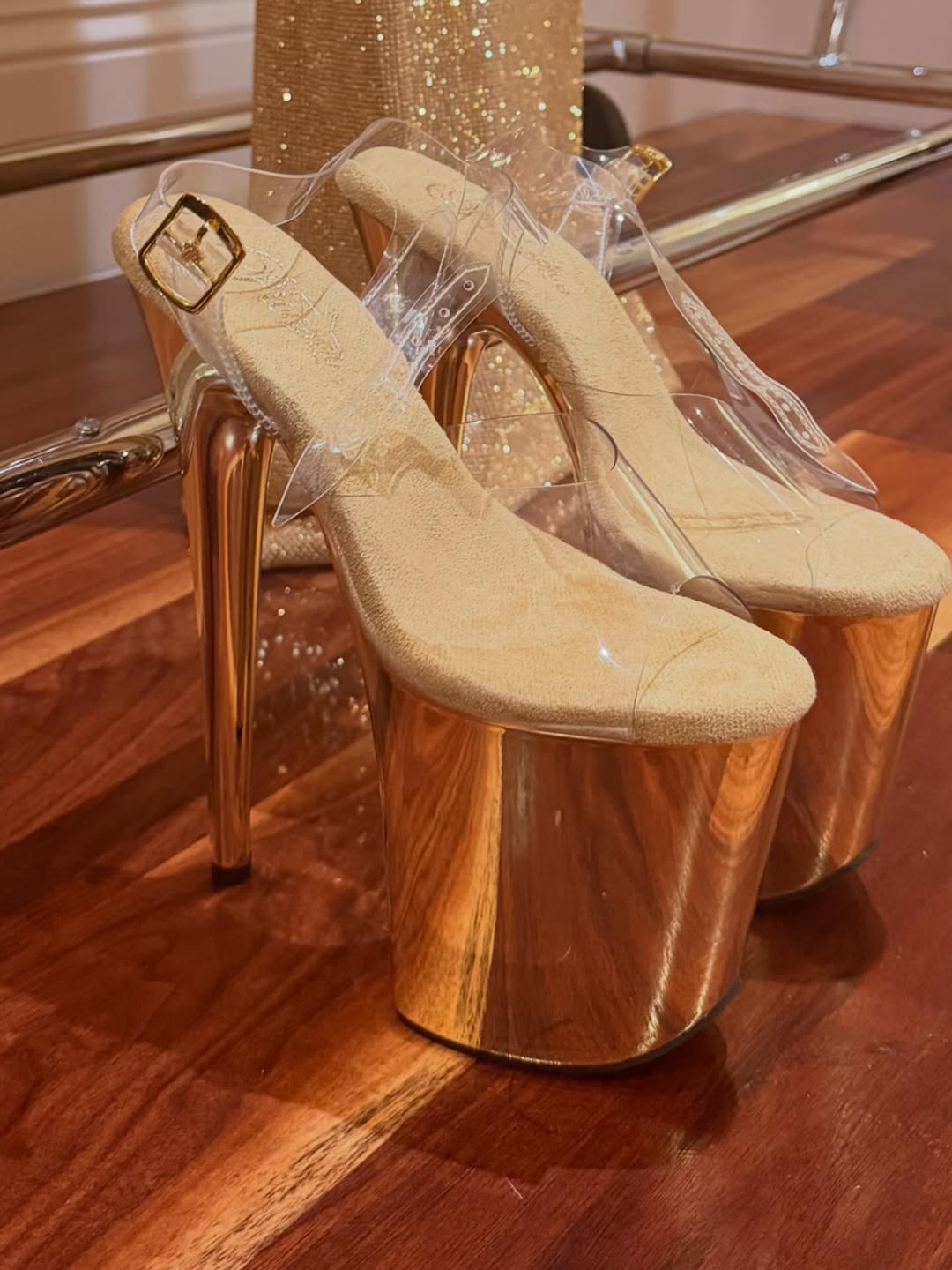 Ωστόσο, η λεπτομέρεια που έκανε τη διαφορά —και τελικά προκάλεσε το ατύχημα— ήταν τα παπούτσια της. Η διάσημη τηλεπερσόνα επέλεξε χρυσά πέδιλα τύπου «stripper heels», με τακούνι που άγγιζε τους 20 πόντους και κόστιζαν μόλις 80 ευρώ.