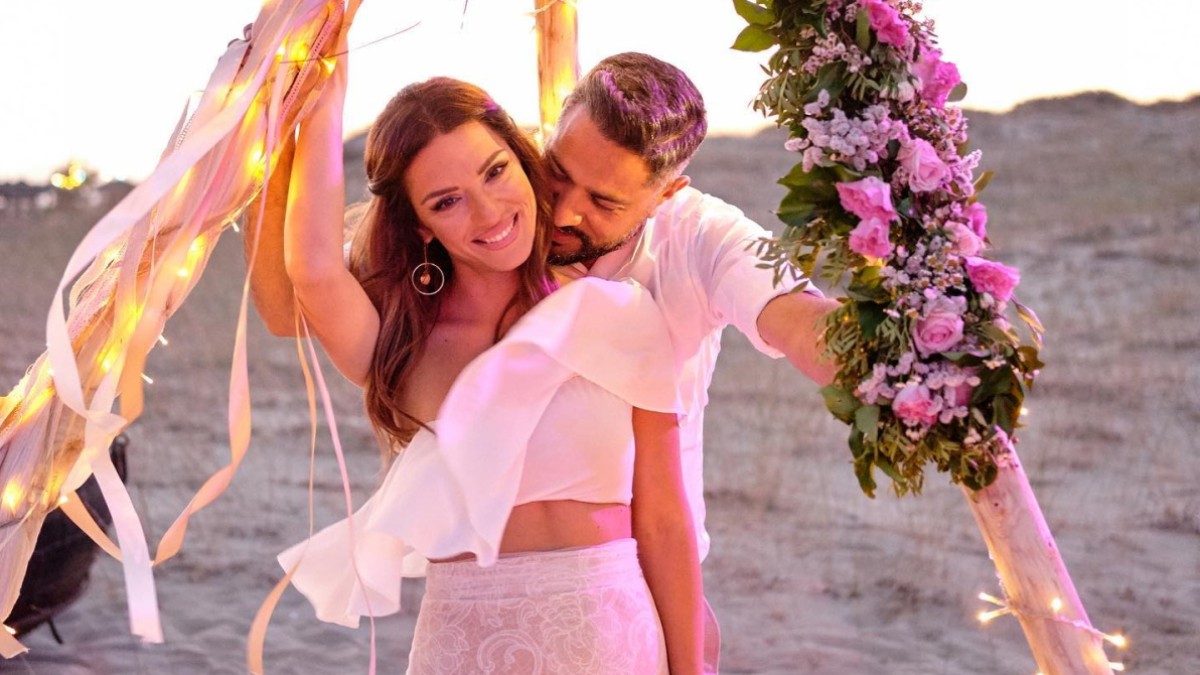 Στην πρώτη φωτογραφία, η Βάσω Λασκαράκη απεικονίζεται μόνη της, ενώ στις υπόλοιπες δύο εμφανίζεται το ζευγάρι μαζί.