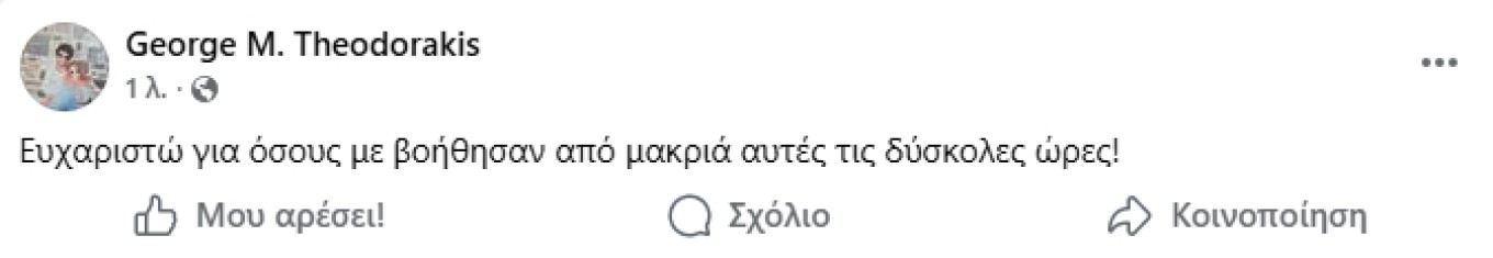 Λίγες ώρες αργότερα, ο ίδιος απέσυρε το αρχικό του μήνυμα και επανήλθε με νέα δημοσίευση, ευχαριστώντας θερμά όσους ανταποκρίθηκαν στο κάλεσμά του και του πρόσφεραν κουράγιο σε αυτή την κρίσιμη στιγμή.
