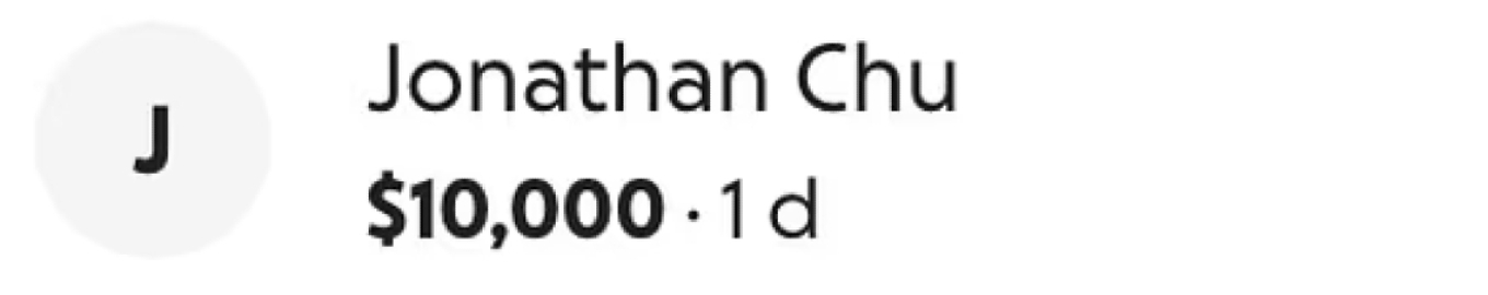 Μεταξύ των μεγάλων δωρητών ήταν και ο σκηνοθέτης Τζόναθαν Τσου, με συνεισφορά 10.000 δολαρίων.