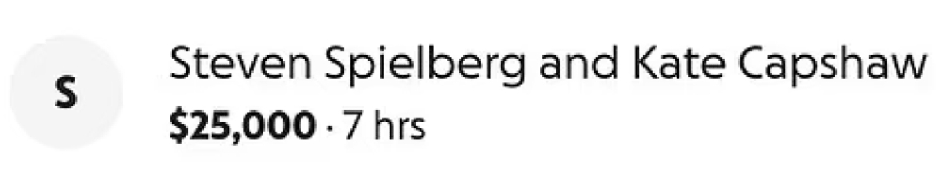 Το ποσό της καμπάνιας αυξανόταν σταθερά, φτάνοντας το 1,5 εκατομμύριο δολάρια, ενώ το βράδυ της Πέμπτης 12 Φεβρουαρίου το όριο αυτό ξεπεράστηκε. Ξεχωριστή αναφορά έγινε και στη δωρεά ύψους 25.000 δολαρίων από τον Steven Spielberg και τη σύζυγό του, Kate Capshaw. Πρόκειται για τη δεύτερη μεγαλύτερη συνεισφορά μετά από μία ανώνυμη δωρεά 30.000 δολαρίων.