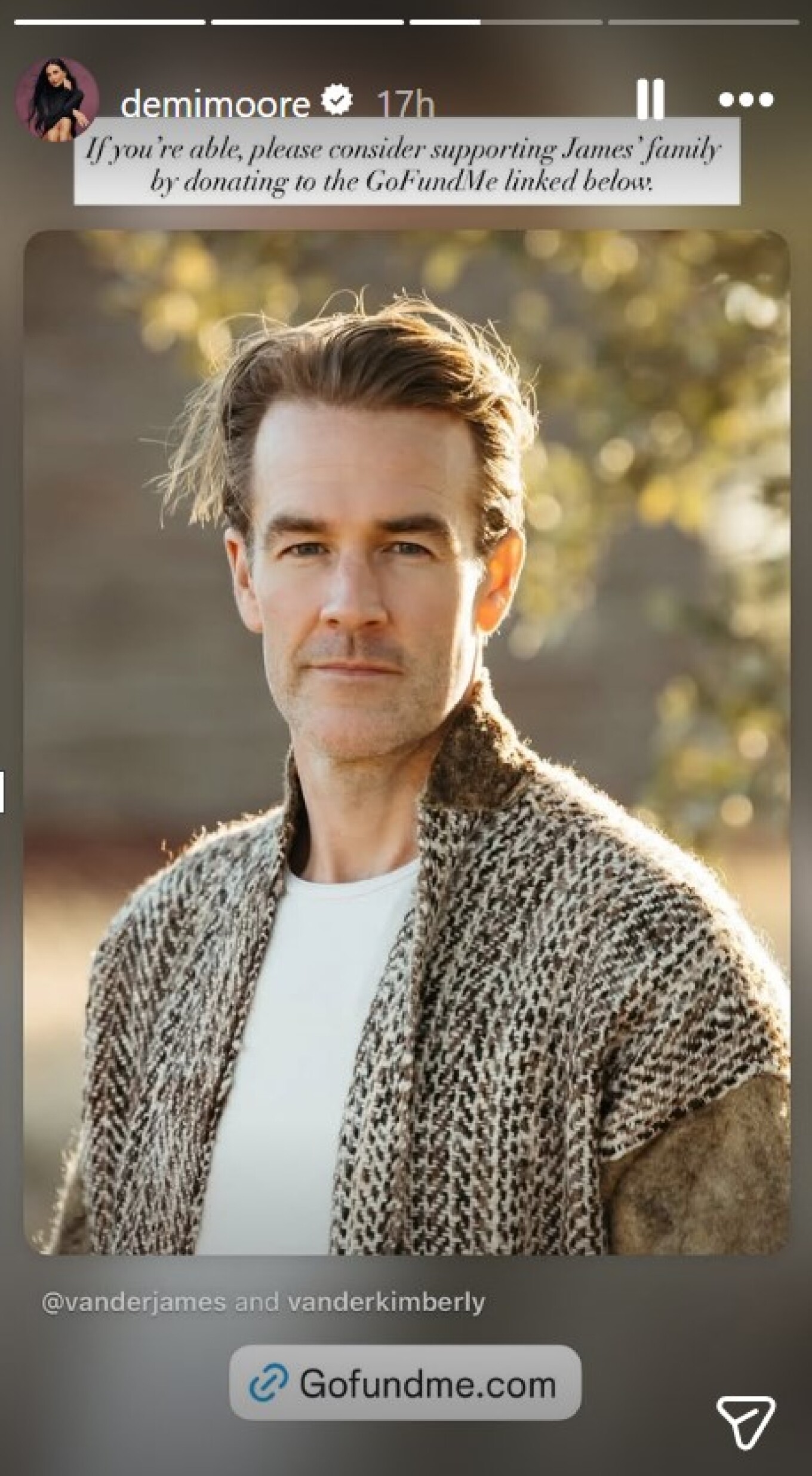 Σε δημόσια έκκληση για οικονομική ενίσχυση της καμπάνιας στο GoFundMe προχώρησε και η Demi Moore. Μέσα από τον προσωπικό της λογαριασμό στο Instagram, η ηθοποιός κάλεσε τους διαδικτυακούς της φίλους να στηρίξουν την προσπάθεια που έχει δημιουργηθεί για την υποστήριξη της οικογένειας του εκλιπόντος ηθοποιού, ενθαρρύνοντας όσους έχουν τη δυνατότητα να προσφέρουν μια έμπρακτη βοήθεια σε αυτή τη δύσκολη περίοδο.