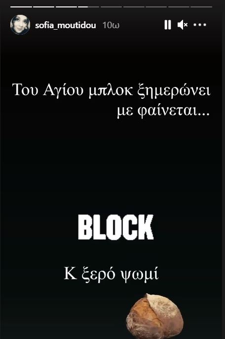 Η Σοφία Μουτίδου ant;edrase στα σχόλια που της ευχήθηκαν ακόμα και θάνατο και unfollow και ανέβασε story που απειλεί με block.