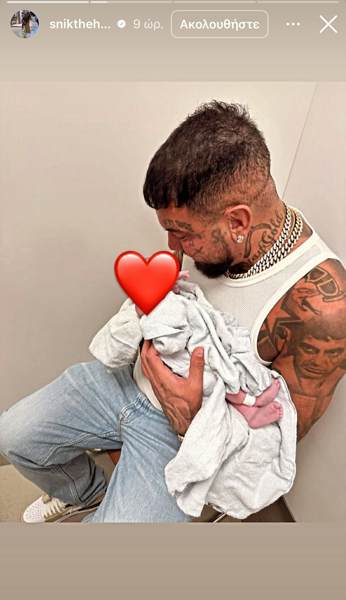 Η είδηση έγινε γνωστή μέσα από τον προσωπικό λογαριασμό του Snik στο Instagram το βράδυ της Πέμπτης 2 Απριλίου. Ο τράπερ, φανερά συγκινημένος, μοιράστηκε με τους χιλιάδες ακολούθους του μια τρυφερή φωτογραφία μέσα από το μαιευτήριο, στην οποία κρατά στην αγκαλιά του τη νεογέννητη κόρη του.