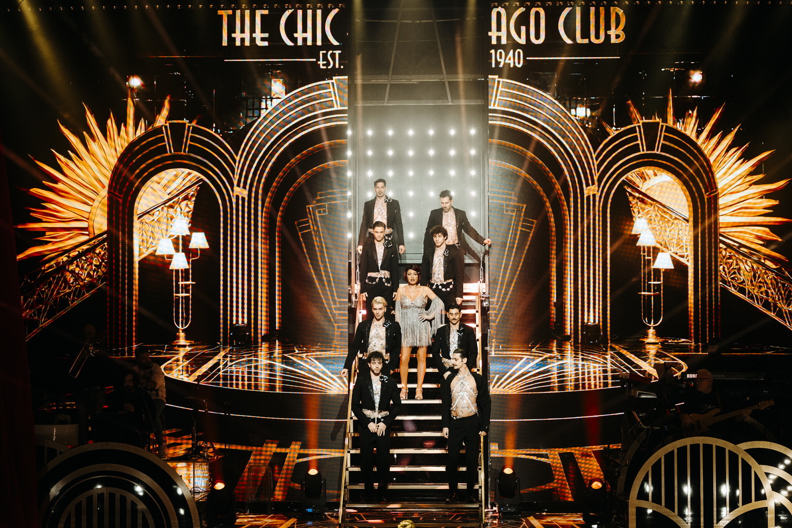Η σκηνοθετική και καλλιτεχνική σφραγίδα του Φωκά Ευαγγελινού μεταμόρφωσε το NOX σε έναν μαγικό, βελούδινο, glamorous θεατρικό χώρο, όπου όλα λειτουργούν στην απόλυτη εντέλεια. Οι 25 χορευτές και οι 13 μουσικοί, με πάθος, ακρίβεια και θεατρικότητα, απογείωσαν το θέαμα σε επίπεδο μεγάλων διεθνών σκηνών.