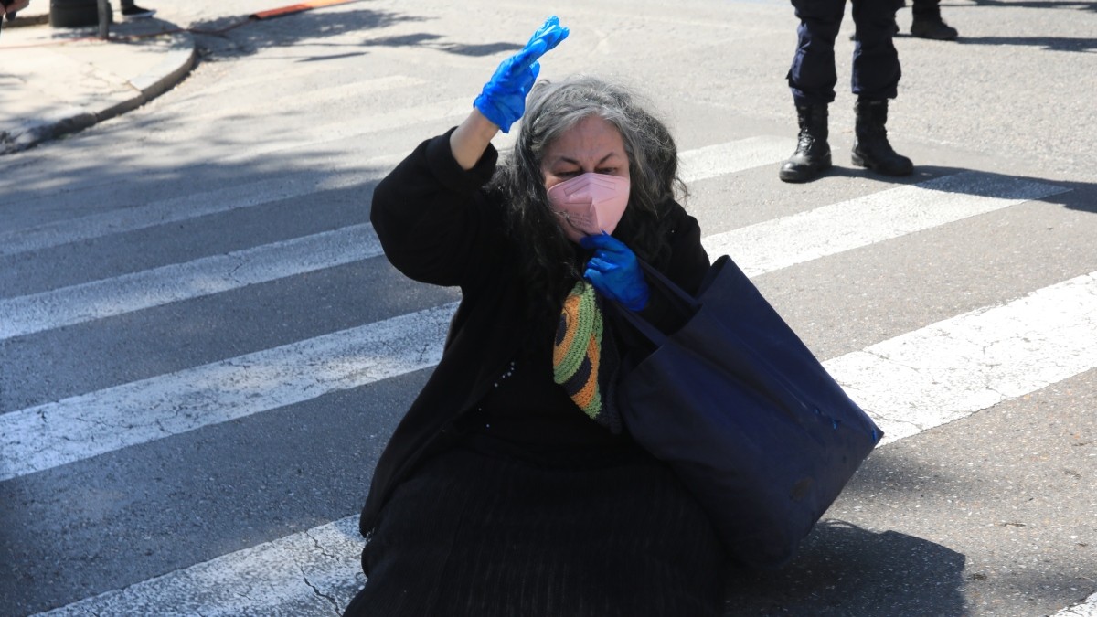 Η κ. Λουκά φώναζε συνθήματα για την τραγωδία των Τεμπών, αλλά και το γάμο των ομόφυλων ζευγαριών με αποδέκτη τον Κυριάκο Μητσοτάκη, ξάπλωσε στο έδαφος και άρχισε να εξαπολύει ύβρεις προς όλους.