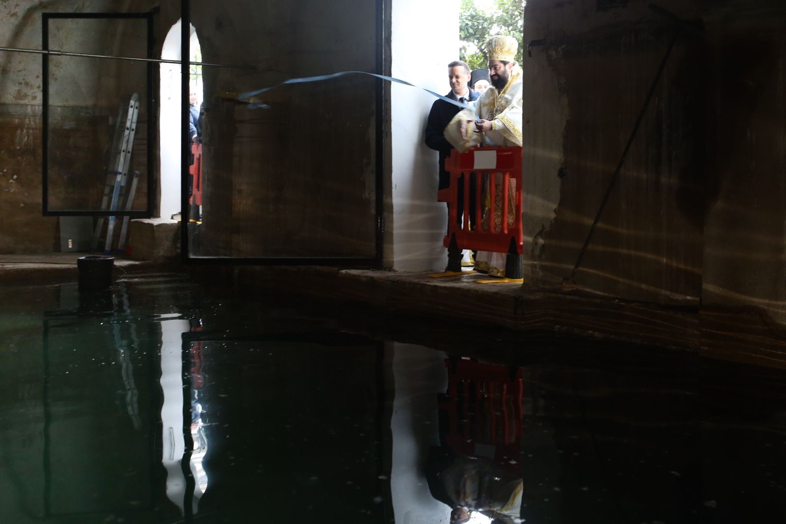 Στη συνέχεια, παρέστη στη τελετή Αγιασμού των Υδάτων στο Αδριάνειο Υδραγωγείο (Δεξαμενή Αθηνών) με την κατάδυση του Τιμίου Σταυρού να πραγματοποιείται από τον Θεοφιλέστατο Επίσκοπο Ευρίπου, κ. Χρυσόστομο.