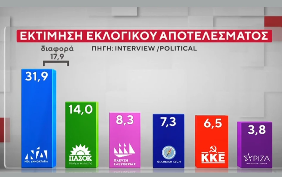 Δημοσκόπηση Interview: Κυρίαρχη η ΝΔ με 18 μονάδες διαφορά από το ΠΑΣΟΚ – Τι απαντούν οι πολίτες για Τσίπρα και Καρυστιανού