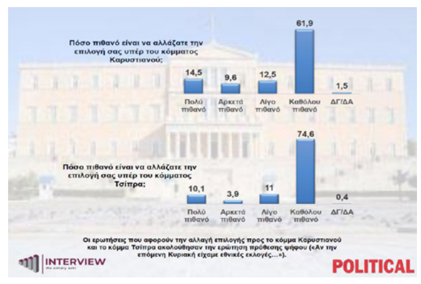 Σημαντικά συμπεράσματα για το πολιτικό σκηνικό, με φόντο τη δημιουργία νέων φορέών, προκύπτουν από τη νέα δημοσκόπηση της Interview για λογαριασμό της Political.
