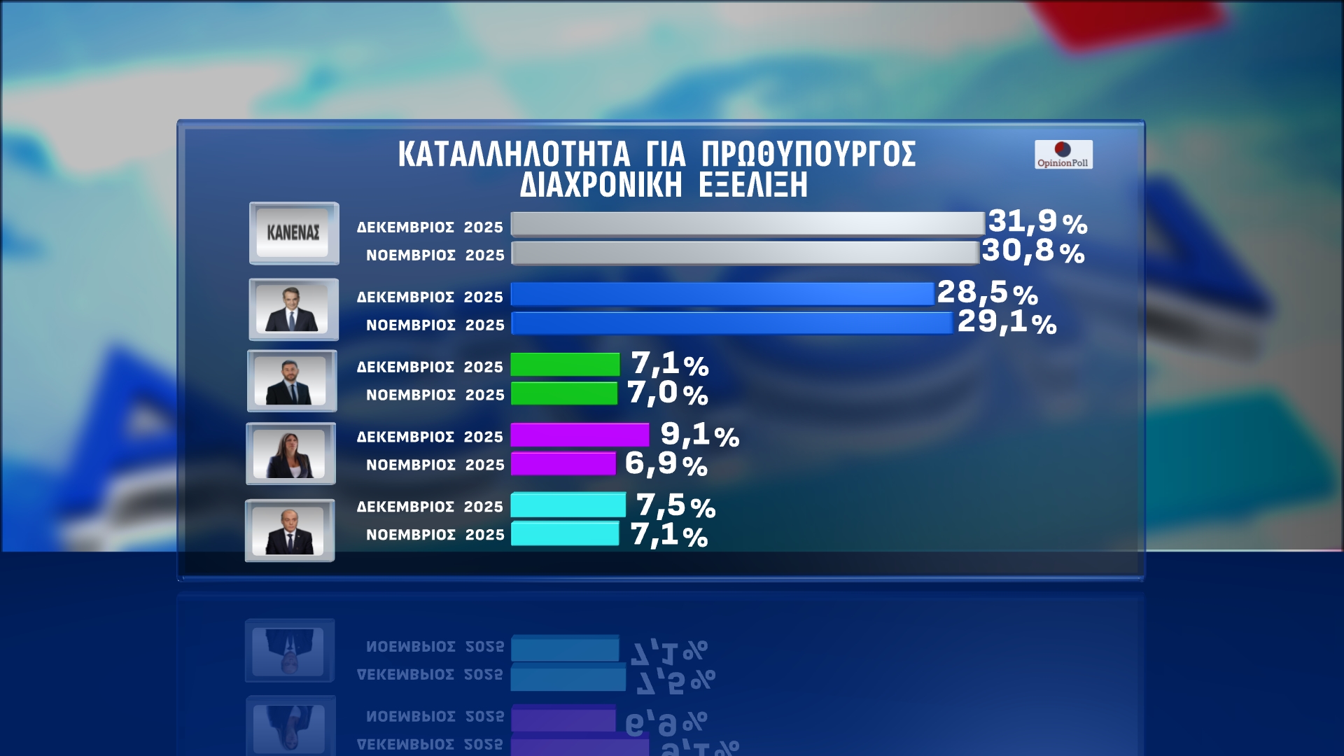 Κυρίαρχη για μια ακόμη φορά είναι η Νέα Δημοκρατία σύμφωνα με την δημοσκόπηση της εταιρείας Opinion Poll που παρουσιάστηκε στο ACTION 24.