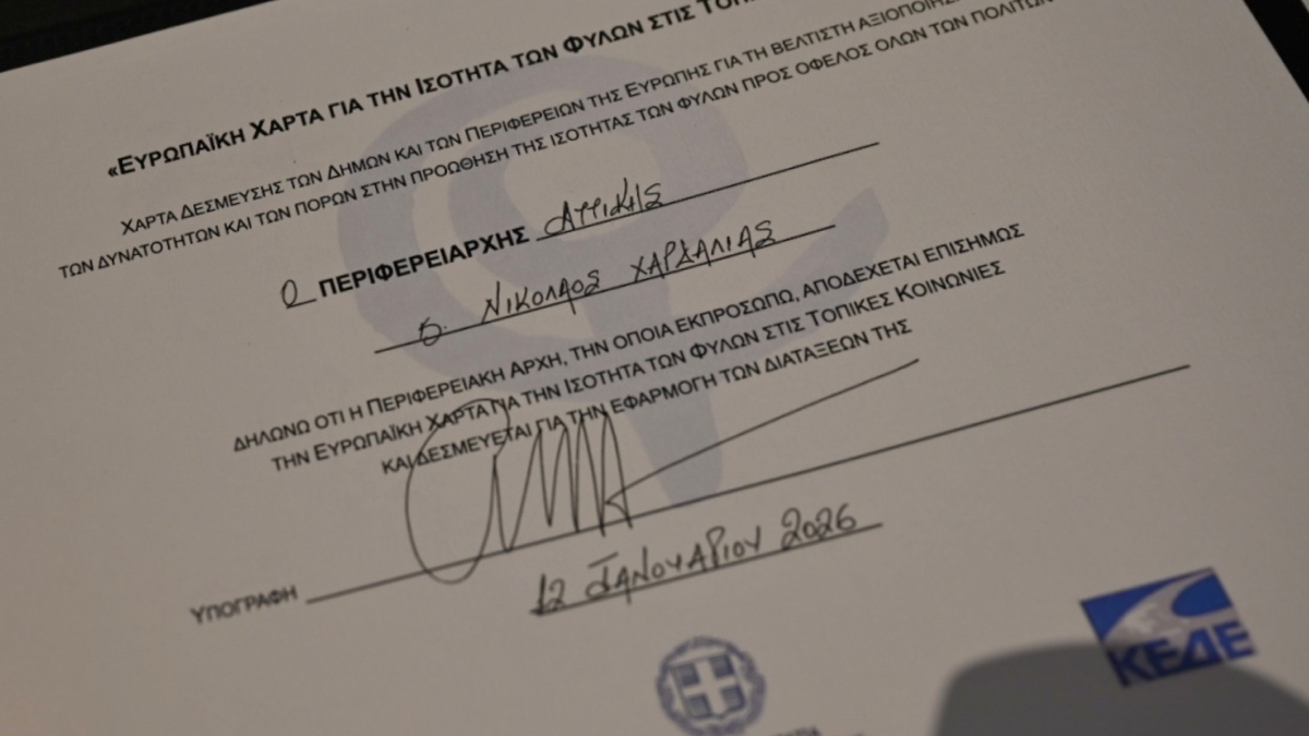 Ένα από τα πιο σημαντικά κανονιστικά κείμενα της Ευρωπαϊκής Ένωσης, η αναθεωρημένη έκδοση της Ευρωπαϊκής Χάρτας για την Ισότητα των Φύλων στις Τοπικές Κοινωνίες, υπεγράφη από τον Περιφερειάρχη Αττικής Νίκο Χαρδαλιά στο πλαίσιο ειδικής εκδήλωσης που διοργανώθηκε στο Ωδείο Αθηνών.