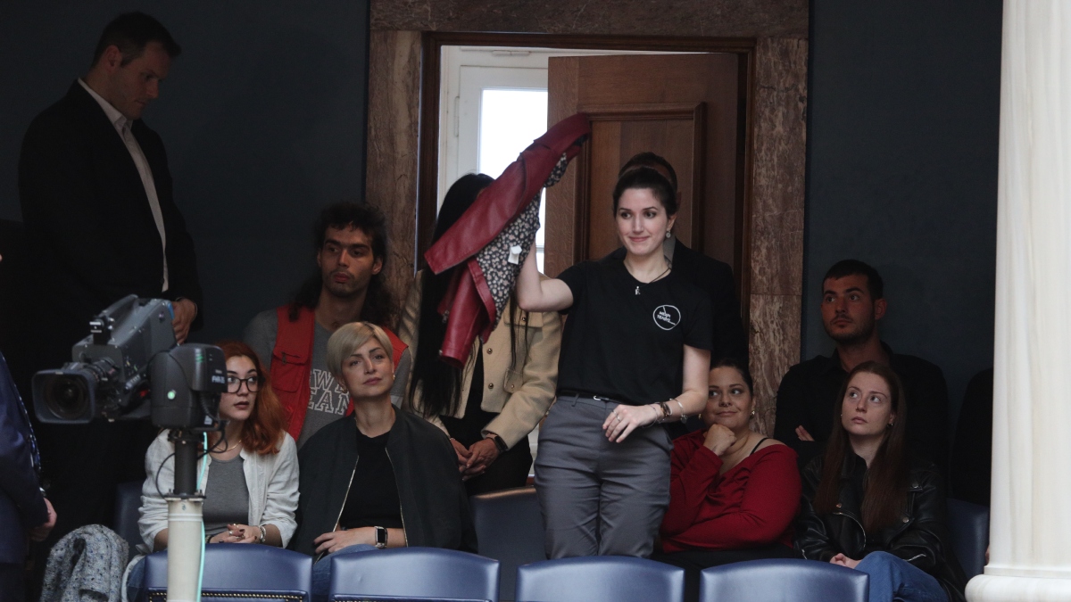 Να ρωτάνε γιατί έχουν πανό μέσα στην τσάντα τους». Αυτά είπε η κ. Κωνσταντοπούλου «δεν γίνονται σε καμία άλλη χώρα» και σε «καμία δημοκρατική χώρα δεν εφαρμόζονται τέτοιοι κανόνες απώθηση της κοινωνίας και της Δημοκρατίας».