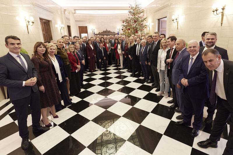 Μέλη της Κοινοβουλευτικής Ομάδας της Νέας Δημοκρατίας υποδέχτηκε ο πρωθυπουργός Κυριάκος Μητσοτάκης στο Μέγαρο Μαξίμου, λίγες ώρες πριν αναχωρήσει για τις Βρυξέλλες, όπου θα συμμετάσχει στη Σύνοδο Κορυφής ΕΕ- Δυτικών Βαλκανίων.